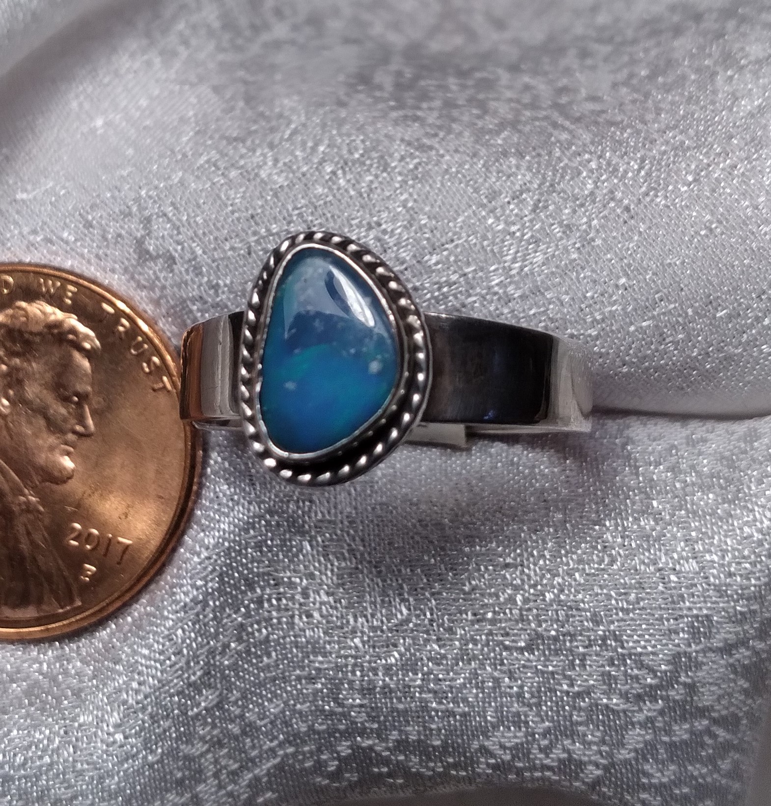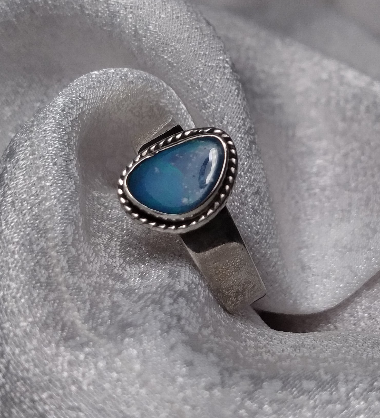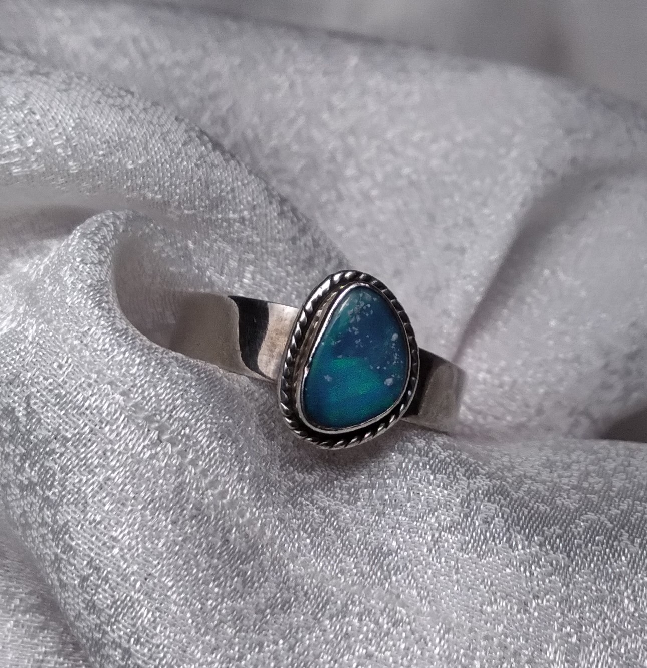Free form Opal Doublet braided bezel ring,Size 7.25.