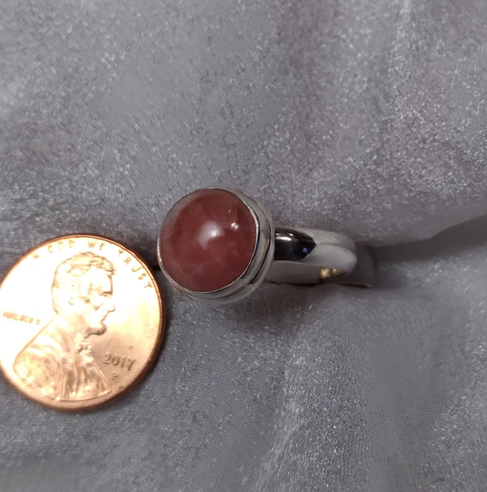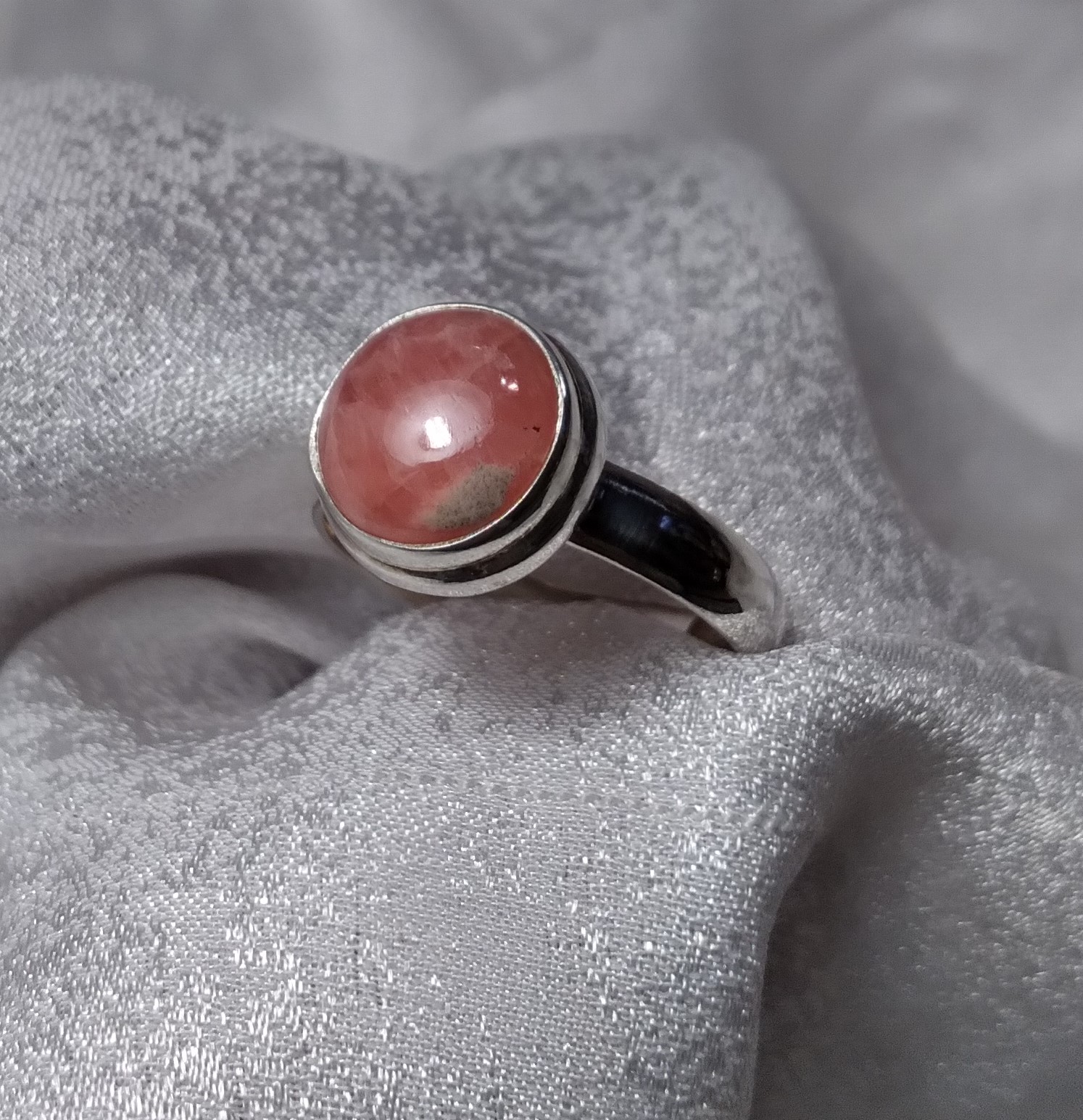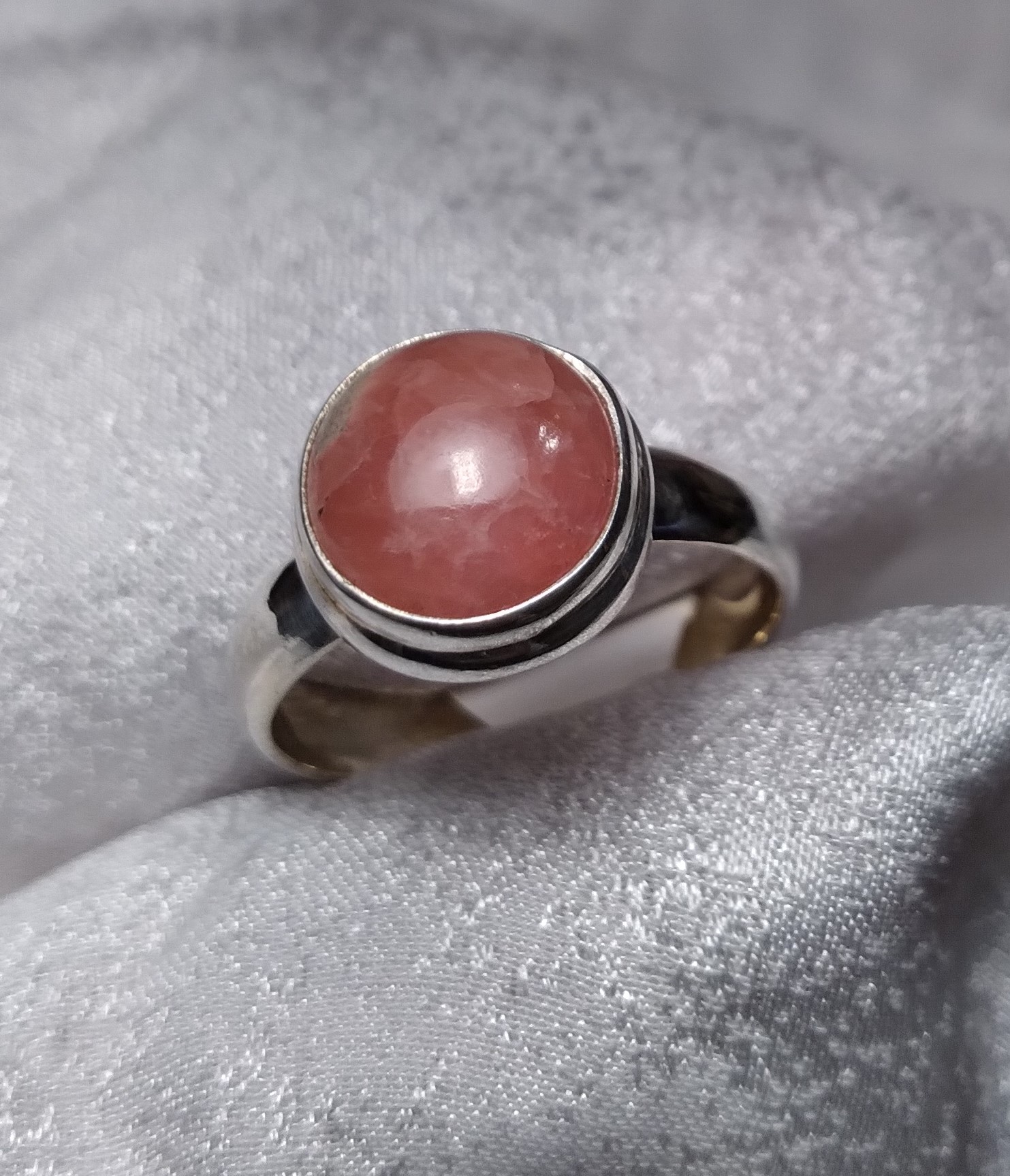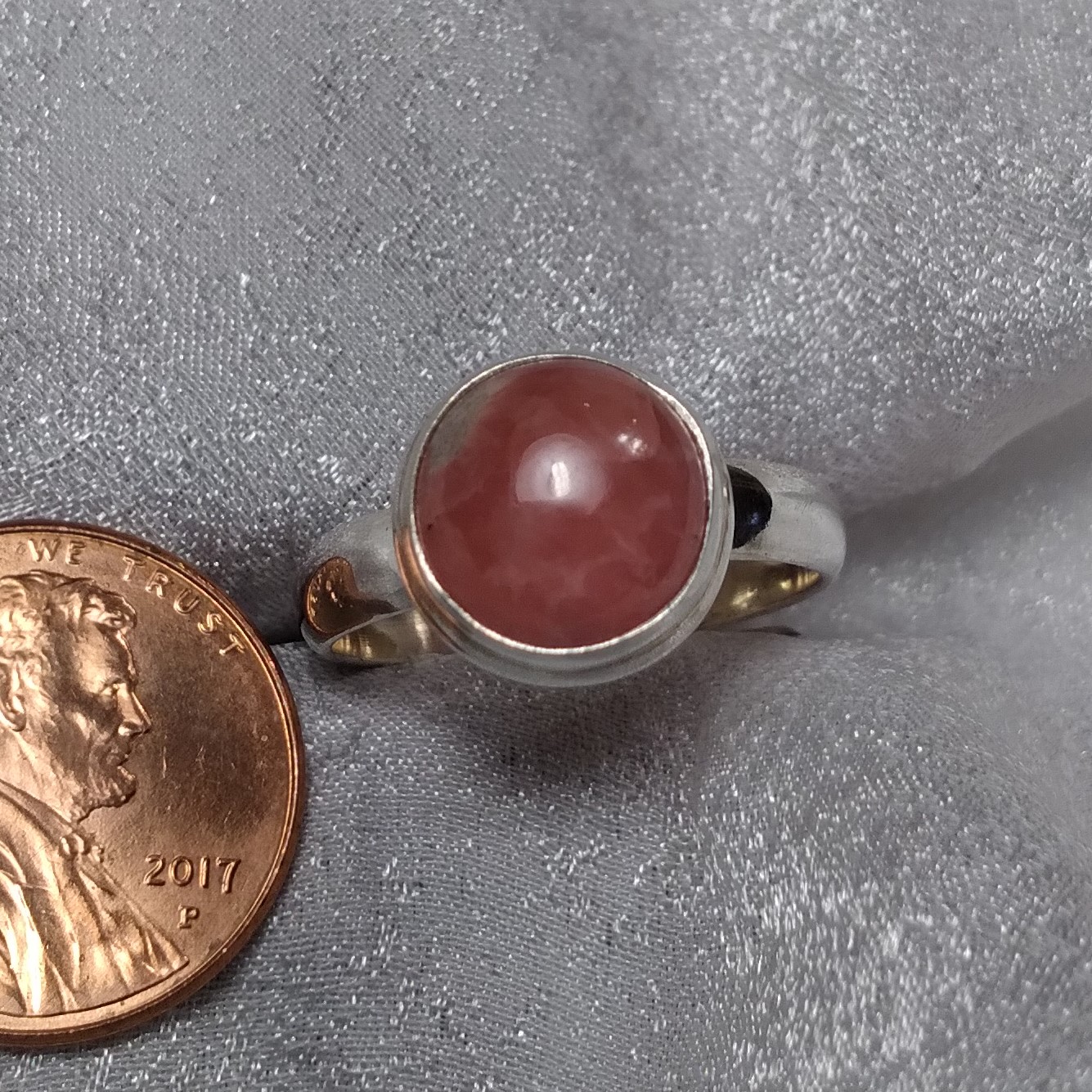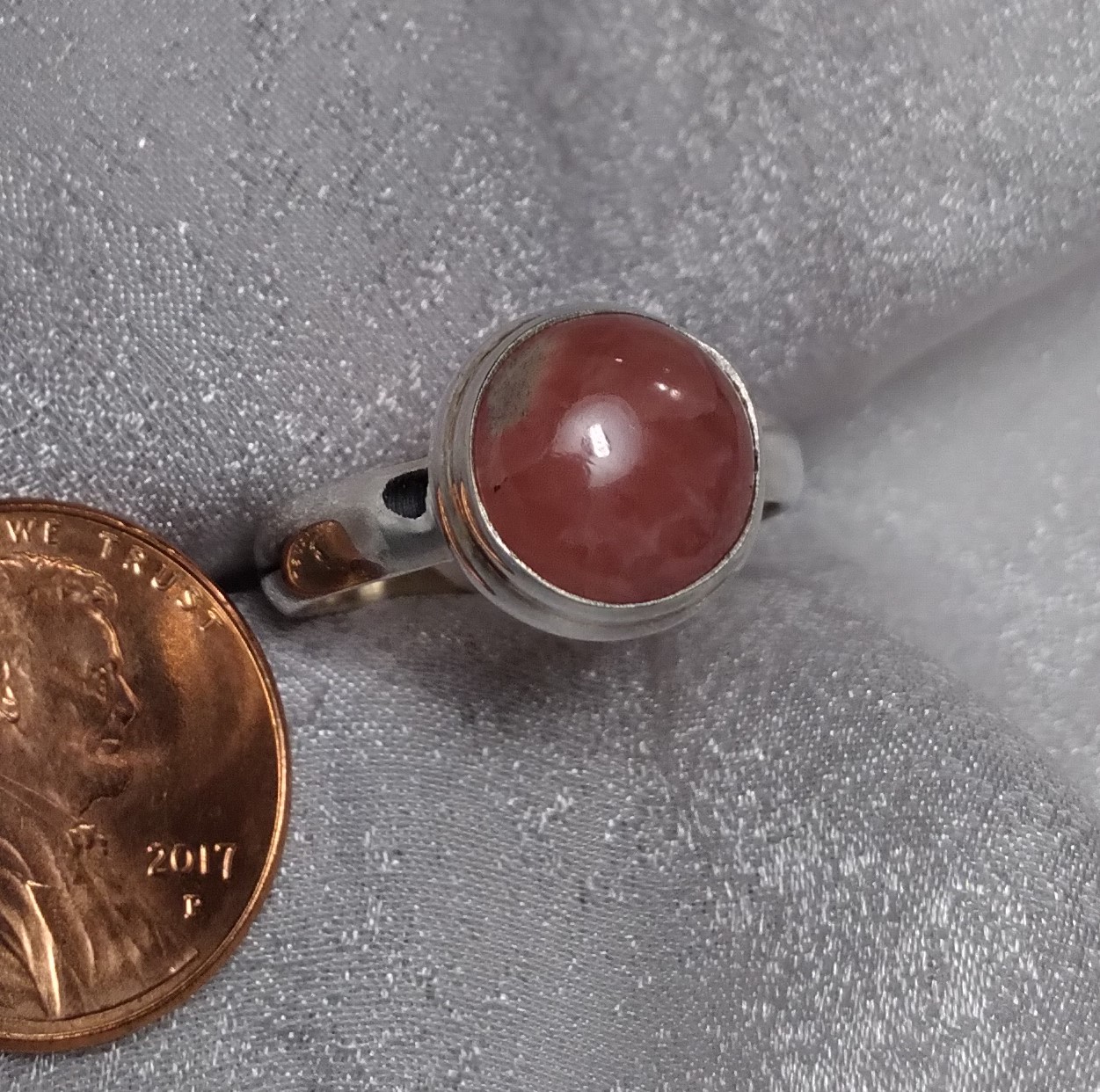 Sweet round cabochon, step bezel set, included Rhodochrosite ring. Size 8.25.